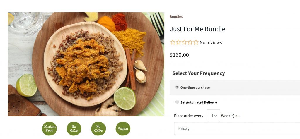 All their bundles, including the “Just for Me” comes with a detailed 7-day meal plans= with shopping lists and recipes for any additional side dishes you may be interested in.